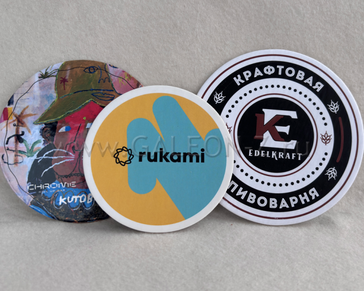 Первый – прямая печать (шелкография) на специальном гигроскопичном пивном картоне. Применяется для печати небольших тиражей. Это предложение очень актуально для кафе, пабов и ресторанчиков, а также для проведения краткосрочных рекламных компаний.